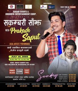 टोरण्टो । चर्चित तथा लोकप्रिय गायक प्रकाश सपुतले क्यानाडामा प्रस्तुती दिने भएका छन् । आफ्नो लोकप्रिय गीत ‘बोल माया’ को दोस्रो भाग ल्याउने तयारीमा रहेका गायक सपुतले आउँदो जुलाई १६ मा ‘सकम्बरी साँझ विथ प्रकाश सपुत’ मा आफ्नो प्रस्तुती दिदैछन् । आगन इभेन्ट्स एण्ड झुमर इन्टरटेनमेन्ट कर्पोरेशनको आयोजनामा गायक प्रकाश पहिलो पटक क्यानाडा प्रस्तुत हुँदैछन् ।