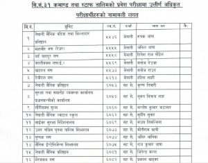 स्टाफ कलेजले प्रकाशित गरेको सुचनामा सेनानी रुपक थापाको नाम पहिलो नम्बरमा प्रकाशित भएको छ । परीक्षामा दोस्रोमा अनिल थापा, तेस्रोमा दिनेशराज पौडेल, चौथोमा मनोज देउजा, पाँचौमा मनोज राउत र छैटौंमा हरिश शाहीको नाम प्रकाशित भएको छ ।