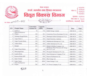 लाइसेन्स खारेजीको प्रक्रियमा परेका आयोजना