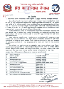 काठमाडौँ । प्रेस काउन्सिल नेपालले विभिन्न ४ वटा सञ्चारमाध्यमलाई कालोसूचीमा राख्ने निर्णय गरेको छ ।
