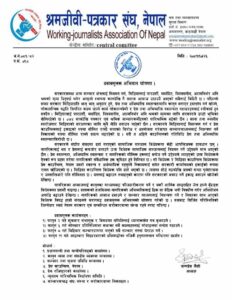 काठमाडौँ । श्रमजीवी पत्रकारको पक्षमा निरन्तर खबरदारी र आन्दोलन गर्दै आएको श्रमजिवी पत्रकार संघ नेपालले आन्दोलनको कार्यक्रम घोषणा गरेको छ । अध्यक्ष जन्मदेव जैसीद्वारा जारी विज्ञप्ती अनुसार पछिल्लो समय सरकार मिडिया प्रति झन् झन अनुदार बन्दै प्रेस तथा अभिव्यक्ति स्वतन्त्रतामाथि हस्तक्षेप गर्दै आएपछि आन्दोलनको कार्यक्रम घोषणा गरिएको हो ।