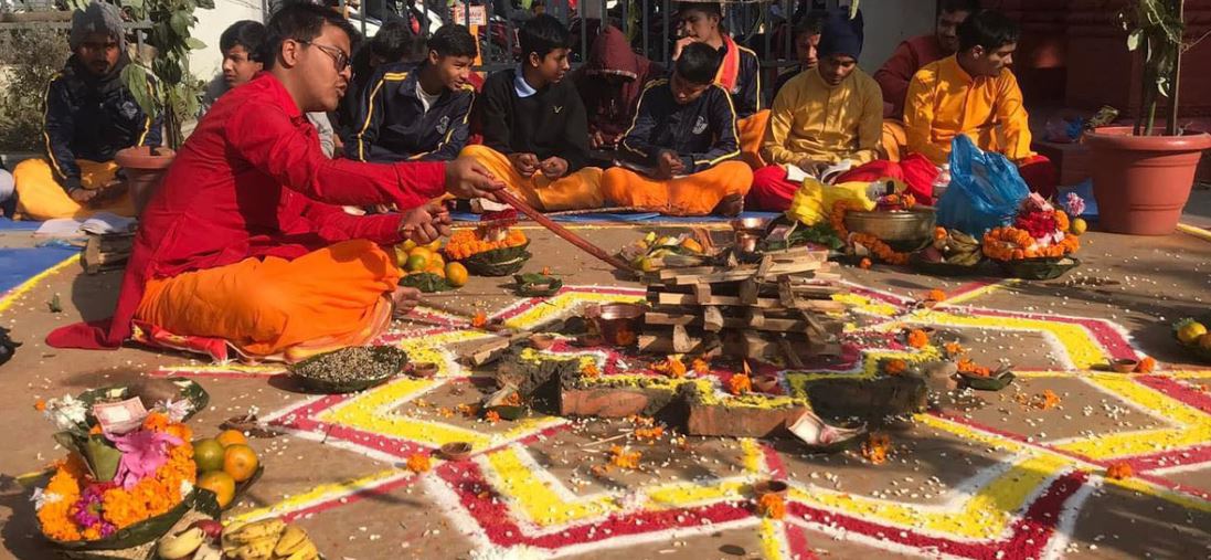 विद्यार्थीलाई पुजा विधान सिकाउँदै दरबार हाई स्कुल
