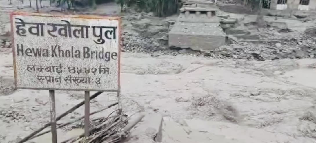 बाढीले पुल बगाएको हेवा खोलामा बेलिब्रिज राखिने