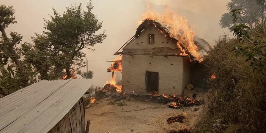 प्यूठानमा डढेलो बस्तीमा पस्दा ११ घर जलेर